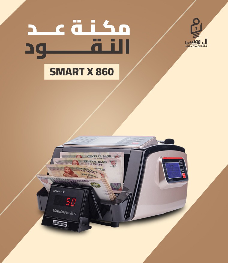 مكنة عد النقود SMART-X-860 بكشف تزوير عالي، تدعم عد عملات مختلفة، تقسيم بواكي ورزم، وتجميع القيمة (VALUE). ضمان عام وتوصيل مجاني لجميع المحافظات!